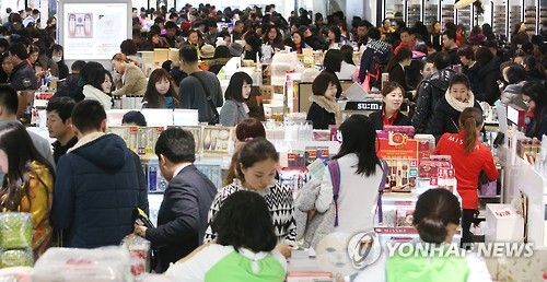 | △ 중국인 관광객으로 발디딜틈 없는 서울 시내 한 면세점의 모습. (연합뉴스 자료사진) |