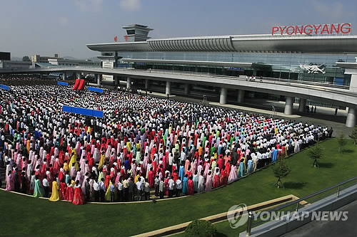 | △ 평양 순안국제공항 신청사 준공식 (평양 AP=연합뉴스) 북한 평양 순안국제공항 신청사 준공식이 1일 현지에서 벌어지고 있다. marshal@yna.co.kr |