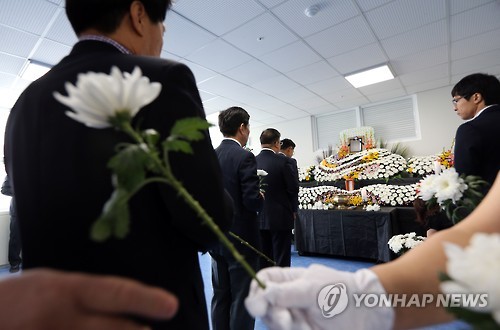 | △ 중국 버스사고 사망 공무원 분향소 (광주=연합뉴스) 박철홍 기자 = 2일 오전 광주시청 1층에 차려진 분향소에서 동료 공무원들이 전날 중국 지린성에서 발생한 버스 추락 사고로 숨진 광주시청 공무원 김철균 지방공업사무관를 추모하며 헌화하고 있다. |
