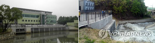 △ 김포시 빗물 펌프장용량 대폭 확충…홍수피해 최소화 (김포=연합뉴스) 경기도 김포시는 집중호우 피해를 최소화하기 위해 빗물을 강제로 한강으로 퍼내는 배수 펌프장을 가동하는 등 총력을 쏟고 있다고 3일 밝혔다. 사진은 왼쪽부터 운양배수펌프장 전경과 가동 모습. 2015.7.3 << 김포시청 제공 >>