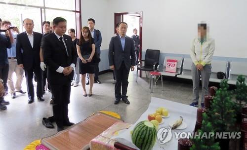 3일 정재근 행정자치부 차관의 빈소 조문을 계기로 중국 선양주재 대한민국영사관이 장례식장 측에 항의한 끝에 닫혔던 문이 열리고 이틀째 문 앞에서 대기하던 기자들이 빈소를 찾았다.
