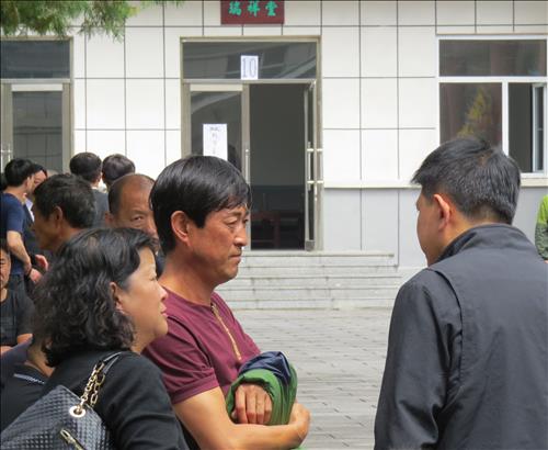 | △ (지안<중국>=연합뉴스) 홍창진 특파원 = 중국 지린성 지안시에서 발생한 한국인 공무원 버스 추락사고 수습현장에서 지안시조선족학교 교사들이 통역 자원봉사를 하는 등 활약하고 있다. 장혁문 박영찬 교사(사진 앞쪽 왼쪽에서 1,2번째)가 사망자 빈소에서 봉사활동을 하고 있다. realism@yna.co.kr |