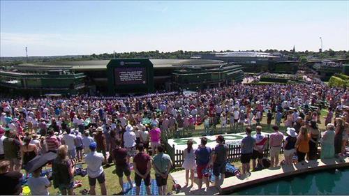 윔블던 테니스대회가 열리는 윔블던의 경기장에서도 경기장 안팎에 있는 3천500여 명이 함께 묵념했다.