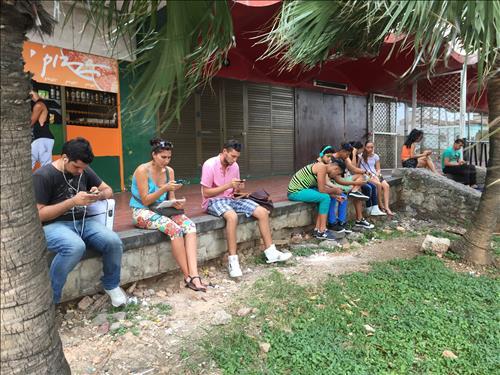 2일부터 시내 번화가에 첫 와이파이 서비스…쿠바 모바일족 인기