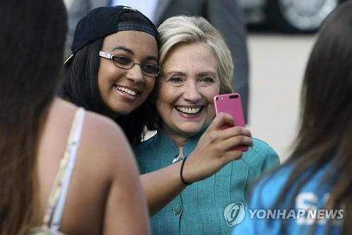 | △ 지난달 셀카촬영에 응하고 있는 힐러리 클린턴 전 국무장관 |