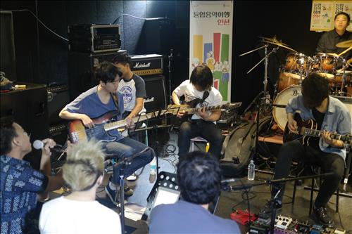 5일 오후 서울 마포구 서교동의 한 합주실에서 생소한 언어의 노랫소리가 흘러나왔다. 몸을 들썩이게 하는 신나는 리듬에 끌려 안을 들여다보니 남성 10여명이 밴드 연습에 몰두해 있었다. 한국인 멤버 사이로 동남아시아 출신으로 보이는 20대 청년 4명이 눈에 띄었다.