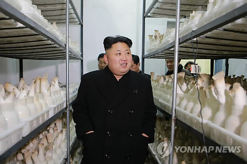 | △ 평양시 버섯공장 시찰하는 김정은(연합뉴스 자료사진) |