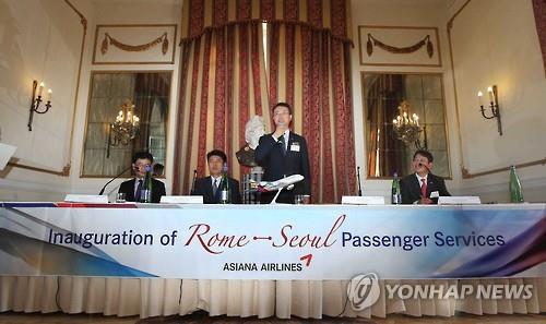 (로마=연합뉴스) 이재영 기자 = 아시아나항공[020560]은 인천과 이탈리아 수도 로마를 오가는 첫 직항편의 운항을 성공적으로 마쳤다고 6일 밝혔다.