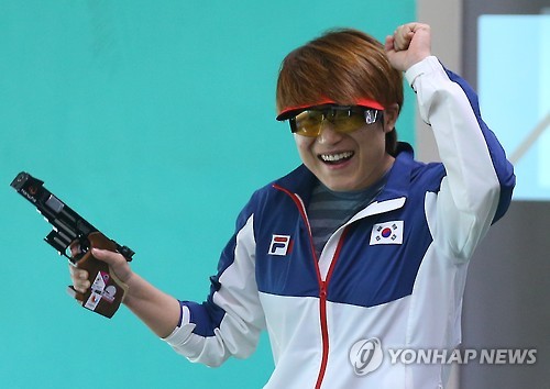 △ 김지혜, 25m 권총 개인전 금메달…U대회 2관왕 (나주=연합뉴스) 김도훈 기자 = 6일 오전 전남 나주시 나주전남종합사격장에서 열린 2015 광주하계유니버시아드 여자 25m 권총 결승에서 김지혜가 금메달을 확정지은 뒤 기뻐하고 있다. 김지혜는 이날 오전 열린 단체전에서 금메달을 따 대회 2관왕을 기록했다.