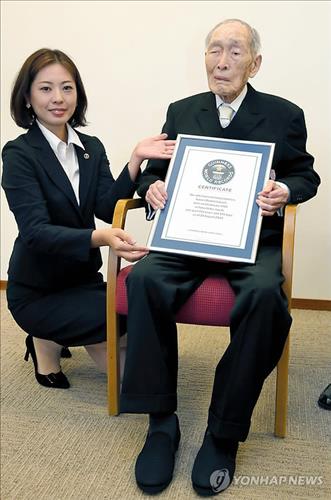 기네스북 '세계 최고령 남성' 일본인 112세로 별세
