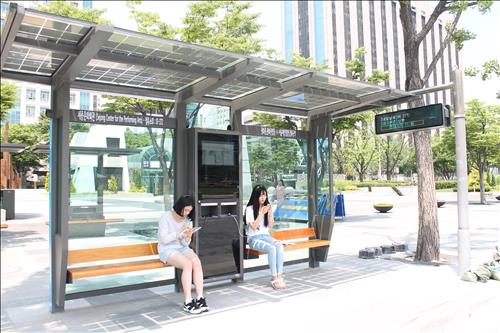 태양전지에서 생산된 전기는 버스 도착 시간을 알려주는 버스 정보 안내단말기 가동에도 사용된다.