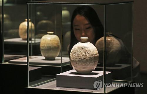 | △ (서울=연합뉴스) 홍기원 기자 = 7일 오전 서울 강남구 신사동 호림박물관 신사분관에서 열리고 있는 '선과 면의 만남, 편병(扁甁)'특별전에서 관람객들이 작품을 관람하고 있다. 전시는 10월 30일까지 열린다. 2015.7.7 xanadu@yna.co.kr (끝) |