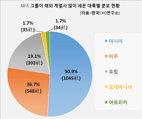 10대그룹 해외계열사 2천55곳…중국 23%·그리스엔 3곳
