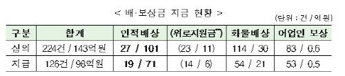 이 가운데 차량·화물배상 114건에 30억원, 어업인 손실보상 83건에 6천만원이 지급됐으며 나머지 사건은 차례로 심의를 받게 된다.