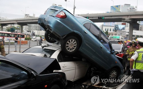 경찰에 따르면 당시 에쿠스 차량이 정지신호에 정지하자 안전거리를 확보하지 않은 채 뒤따르던 SM3와 베르나, SM5가 빗길에 미끄러지면서 차례로 앞 차량을 들이받았다.