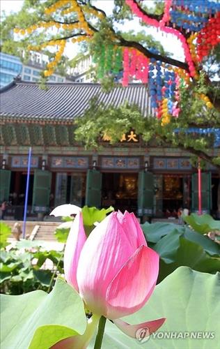 (서울=연합뉴스) 임형두 기자 = 연등에 이어 연꽃! 불교조계종 총본산인 서울 견지동의 조계사가 화려하다. 7월 한여름이 되면서 조계사 앞마당이 연꽃정원으로 깜짝 변신했다. 이 인공 '연못'에서는 홍련과 백련의 꽃봉오리들이 곱게 피어난다.