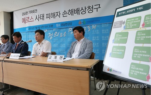 경제정의실천시민연합은 이날 서울 동숭동 경실련 강당에서 기자회견을 열어 피해자들을 대리해 메르스 사태 피해에 대한 손해배상을 청구하는 공익소송 3건을 이날 오후 서울중앙지법에 제기한다고 밝혔다.