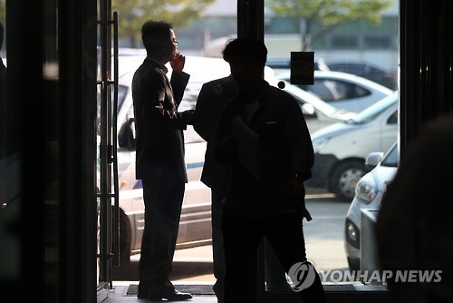 | △ 심의결과 전하는 업체 관계자들 (영종도=연합뉴스) 신준희 기자 = 10일 오후 영종도 인천공항세관 수출입통관청사에서 특허심사위원장인 이돈현 관세청 차장이 새내 면세점 특허심사위원회 심의결과를 발표한 가운데 한 업체 관계자들이 휴대폰으로 소식을 전하고 있다. |