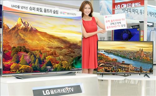 LG전자는 12일부터 이달 말까지 65인치 슈퍼 울트라HD TV(65UF9500, 65UF8600)를 구매하는 고객에게 50만원 상당의 캐시백(또는 상품권)과 43인치 울트라HD TV(43UF6700)를 사은품으로 증정한다.