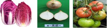 △ 왼쪽부터 '권농빨강2호'(배추), 'e조은플러스'(양파), 'GS핑크'(토마토). <<농림수산식품기술기획평가원 제공>>