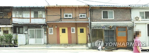 | △ '가난까지 상품화'…쪽방촌 괭이부리마을의 눈물 (인천=연합뉴스) 국내 대표적인 쪽방촌으로 알려진 인천 괭이부리마을 한가운데에 게스트하우스와 유사한 외부인 생활 체험관이 들어서려 하자 주민들이 집단 반발하고 나섰다. 사진은 괭이부리마을 쪽방촌 모습. 가운데 황토색 집은 현재 마을 사랑방으로 쓰고 있지만 인천시 동구는 이를 리모델링해 '옛 생활 체험관'으로 활용할 계획이다. 2015.7.12 <<만석동 공부방 '기찻길옆작은학교' 상근교사 임종연씨 제공>> son@yna.co.kr |