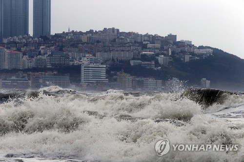 | △ 태풍 찬홈 파도 몰아치는 해운대 (부산=연합뉴스) 조정호 기자 = 12일 북상하는 제9호 태풍 '찬홈(CHAN-HOM)'의 영향으로 부산 해운대해수욕장에 거대한 파도가 몰아치면서 수영금지 조치가 내려졌다. |