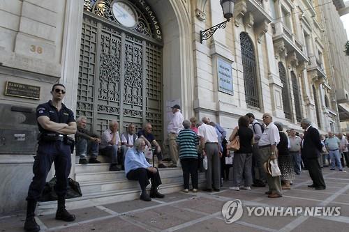 | △ 그리스 은행 개점 기다리는 연금수령자들. (EPA=연합뉴스 자료사진) |