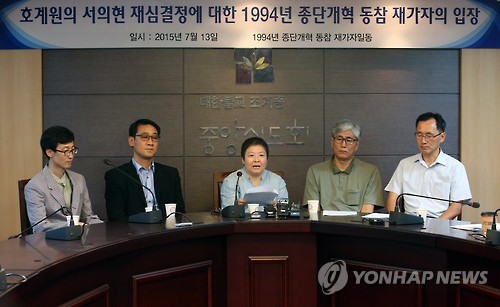 1994년 개혁에 동참했던 재가자 72명은 13일 조계종 중앙신도회 회의실에서 기자회견을 열고 서 전 총무원장에 대한 징계를 공권정지 3년으로 감형한 재심 결정은 무효라며 이를 되돌릴 것을 촉구했다.