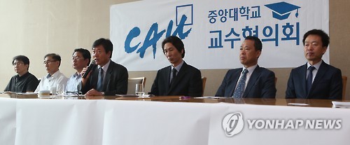 (서울=연합뉴스) 채새롬 기자 = 중앙대 교수협의회가 13일 투표로 이용구 총장에 대한 불신임을 결정, '학사 구조 선진화계획'으로 촉발된 학내 갈등이 정점으로 치닫고 있는 형국이다.