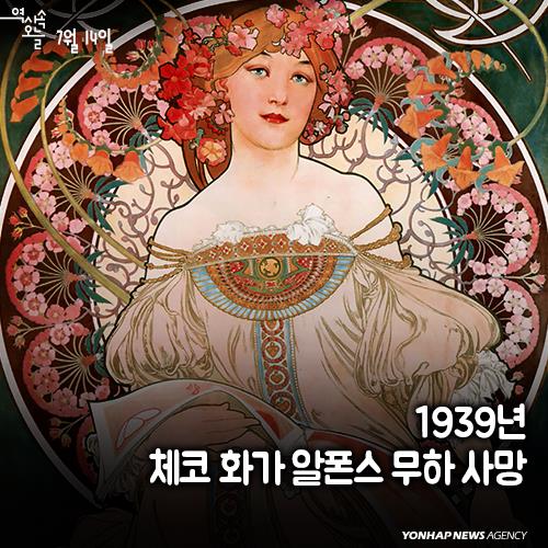 7월14일은 무하의 기일이다. 프랑스 파리와 독일 뮌헨에서 미술을 공부한 무하는 19세기 말 예술 사조인 아르 누보(Art Nouveau)의 대표 주자다. 곡선·여성미·우아함을 강조하던 이 사조에서 무하는 넘실대는 꽃 배경에 얼굴 윤곽선이 또렷한 미인이 등장하는 작품을 그려 주목을 받았다.