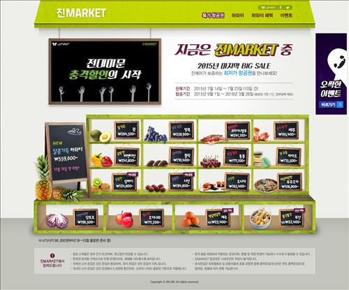 진마켓은 진에어가 백화점 정기세일 개념을 도입해 매년 상·하반기로 나눠 연중 최저가 항공권을 판매하는 온라인 특가 기획전이다.