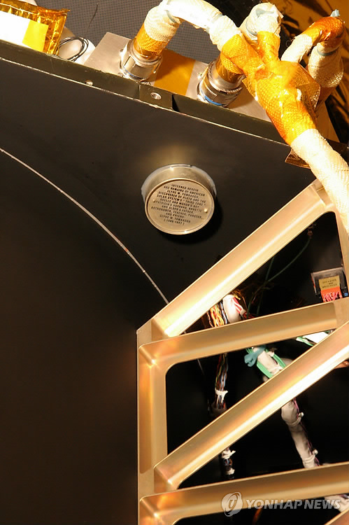 △ 명왕성 발견자 유골 실은 탐사선 '뉴호라이즌스' 1930년 명왕성 발견의 공로를 기리려고 미국인 천문학자 클라이드 톰보의 유해가 담긴 알루미늄 통을 명왕성 탐사선 '뉴호라이즌스'에 부착해 놓았다. 이 탐사선은 14일(미국 시각) 명왕성 최근접점인 7천800마일(약 1만2천553km) 이내로 접근하게 된다.(AP자료사진) ciy@yna.co.kr