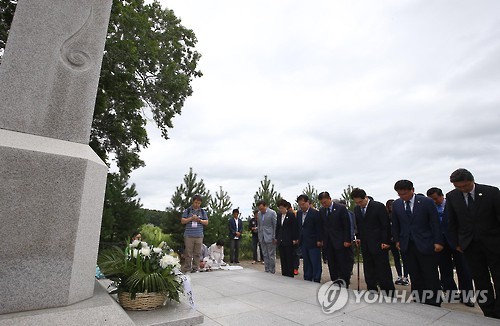 무성한 수풀에 둘러싸인 유허비 앞에서 참가단원들은 숙연함을 감추지 못했다.