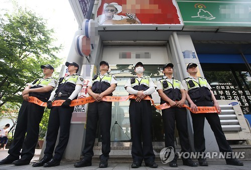 | △ '이적단체 구성 혐의' 코리아연대 사무실 압수수색 (서울=연합뉴스) 임헌정 기자 = 15일 압수수색 중인 서울 종로구 효제동 '자주통일과 민주주의를 위한 코리아연대' 사무실을 경찰이 통제하고 있다. |