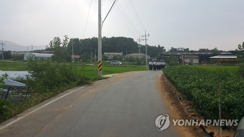 △ 썰렁한 마을 (상주=연합뉴스) 손대성 기자 = 경찰이 음료수 독극물 사건이 발생한 경북 상주시 공성면 금계1리에서 탐문수사와 수색을 벌이고 있다. 2015.7.15 sds123@yna.co.kr