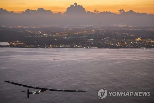 솔라 임펄스2는 지난 3월 아부다비를 출발해 오만, 미얀마, 중국을 거쳤으며, 난징에서 하와이로 가는 도중 악천후를 만나 지난달 1일 일본에 긴급 착륙해 약 한달 동안 체류했다.