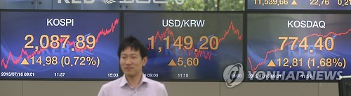 이날 3.9원 오른 1,147.5원에 거래를 시작한 원/달러 환율은 오후 한때 1,150.4원까지 치솟아 2013년 7월 이후 2년 만에 1,150원대를 넘어서기도 했다.