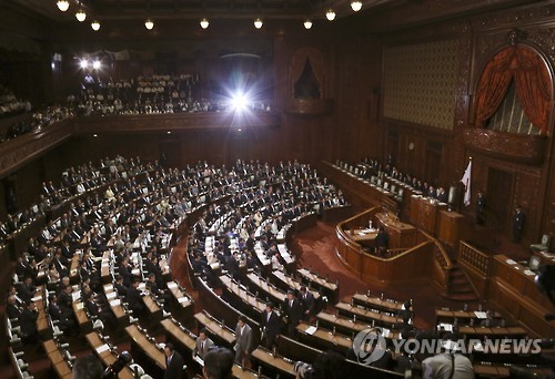 (도쿄=연합뉴스) 일본 연립여당인 자민당과 공명당이 16일 집단 자위권 법안을 중의원 본회의에서 강행 처리함에 따라 법안은 최종 관문인 참의원으로 이송됐다.