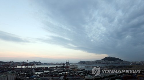 | △ 태풍 몰려오는 부산 하늘 (부산=연합뉴스) 차근호 기자 = 제 11호 태풍 낭카가 북상하고 있는 16일 오후 부산 동구 부산항 관공선 부두 하늘위로 먹구름이 잔뜩 몰려오고 있다. |