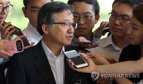 | △ 중앙지검 들어서는 김신종 전 사장 (서울=연합뉴스) 최재구 기자 = 자원개발 비리 의혹과 관련한 조사를 받기위해 김신종 전 광물자원공사 사장이 17일 서울 서초구 중앙지검으로 들어서며 기자의 질문에 답하고 있다. |