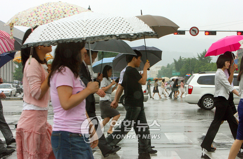 제주도와 남부지방에 내리는 비(강수확률 60%)는 낮에 충청 이남지방, 늦은 오후에는 전국 대부분 지방으로 확대돼 가끔 비(강수확률 60~80%)가 오는 곳이 있겠다.