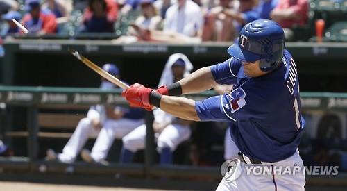 (서울=연합뉴스) 하남직 기자 = 2경기 연속 선발 출전 명단에서 제외된 추신수(33·텍사스 레인저스)가 대타로 나서 한 타석에 들어섰지만 삼진을 당했다.