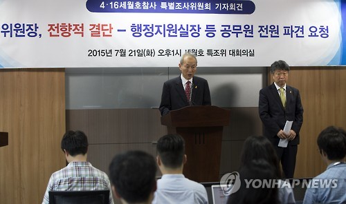 (서울=연합뉴스) 권영전 기자 = 세월호 참사 특별조사위원회가 그간 논란을 빚었던 행정지원실장을 포함해 공무원 전원 파견을 정부에 요청했다.