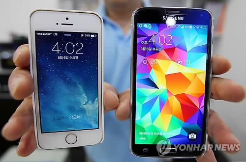 | △ 애플과 삼성전자의 스마트폰인 아이폰5s(왼쪽)와 갤럭시S5(자료사진) |