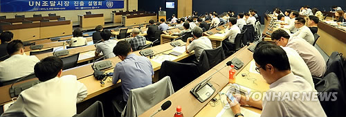 | △ 지난해 6월 서울 대한상공회의소에서 열린 '유엔 조달시장 설명회'에서 참석자들이 강의를 듣고 있다. (연합뉴스 자료사진) |
