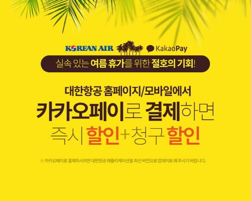 대한항공은 이날부터 8월4일까지 카카오페이로 결제하면 운임할인, 카드사 청구할인 등 이벤트를 벌인다.