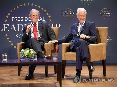 (댈러스=연합뉴스) 장현구 특파원 = 백악관의 주인을 차례로 지낸 인연으로 퇴임 후 더욱 친해진 빌 클린턴 전 대통령과 조지 W 부시 전 대통령이 차기 미국 대통령 선거에서 조용하게 식구를 내조하겠다는 뜻을 밝혔다.