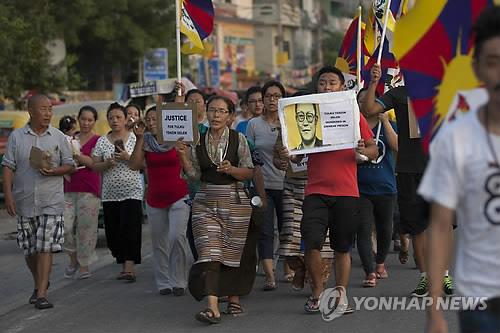 | △ 망명 티베트인들이 13일 인도 뉴델리에서 티베트 라마 텐진 데렉 린포체를 추모하는 촛불 거리행진을 벌이고 있다. 인권단체에서는 린포체가 공원 폭파에 연루됐다는 잘못된 혐의로 중국에서 13년째 구금돼 있다가 사망했다고 주장했다.(AP=연합뉴스 자료사진) |