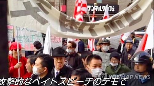 | △ 다큐멘터리에 등장하는 '혐한'(嫌韓)시위 장면.(niconico 제공) |