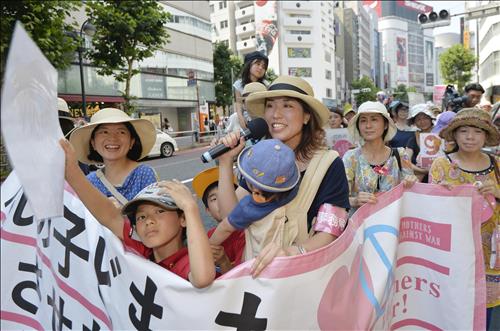 '안전보장 관련 법안(일명 집단 자위권 법안)에 반대하는 어머니 모임'이 26일 도쿄 시부야(澁谷)와 니가타(新潟), 교토(京都), 후쿠오카(福岡) 등 전국 각지에서 시위를 벌였다고 교도통신이 보도했다. 각지에서 모인 사람은 약 1천500명이었다고 교도는 전했다.